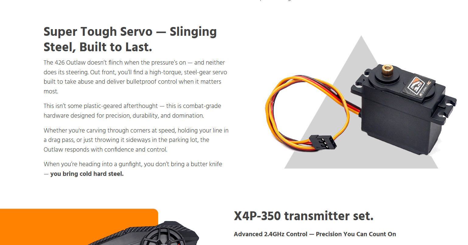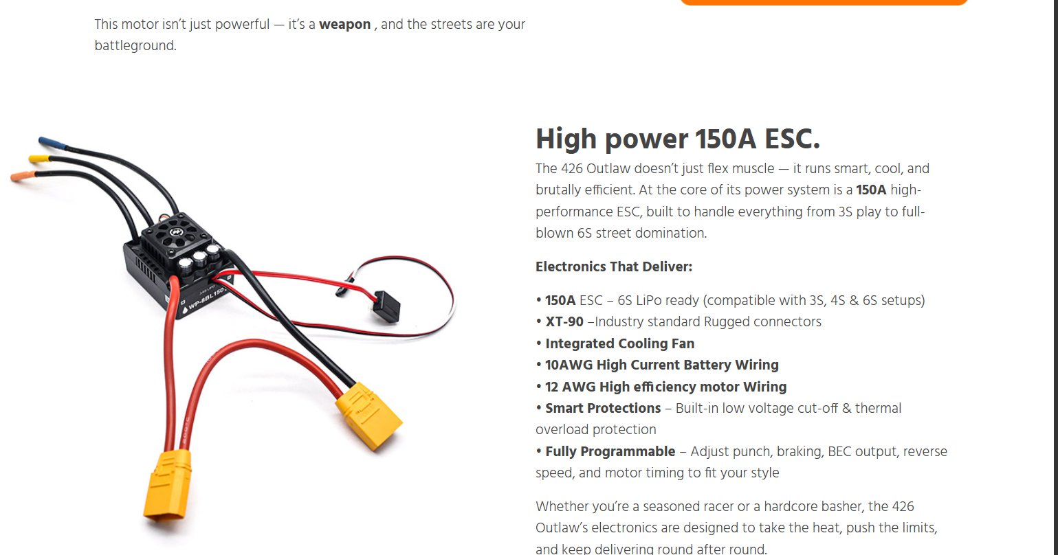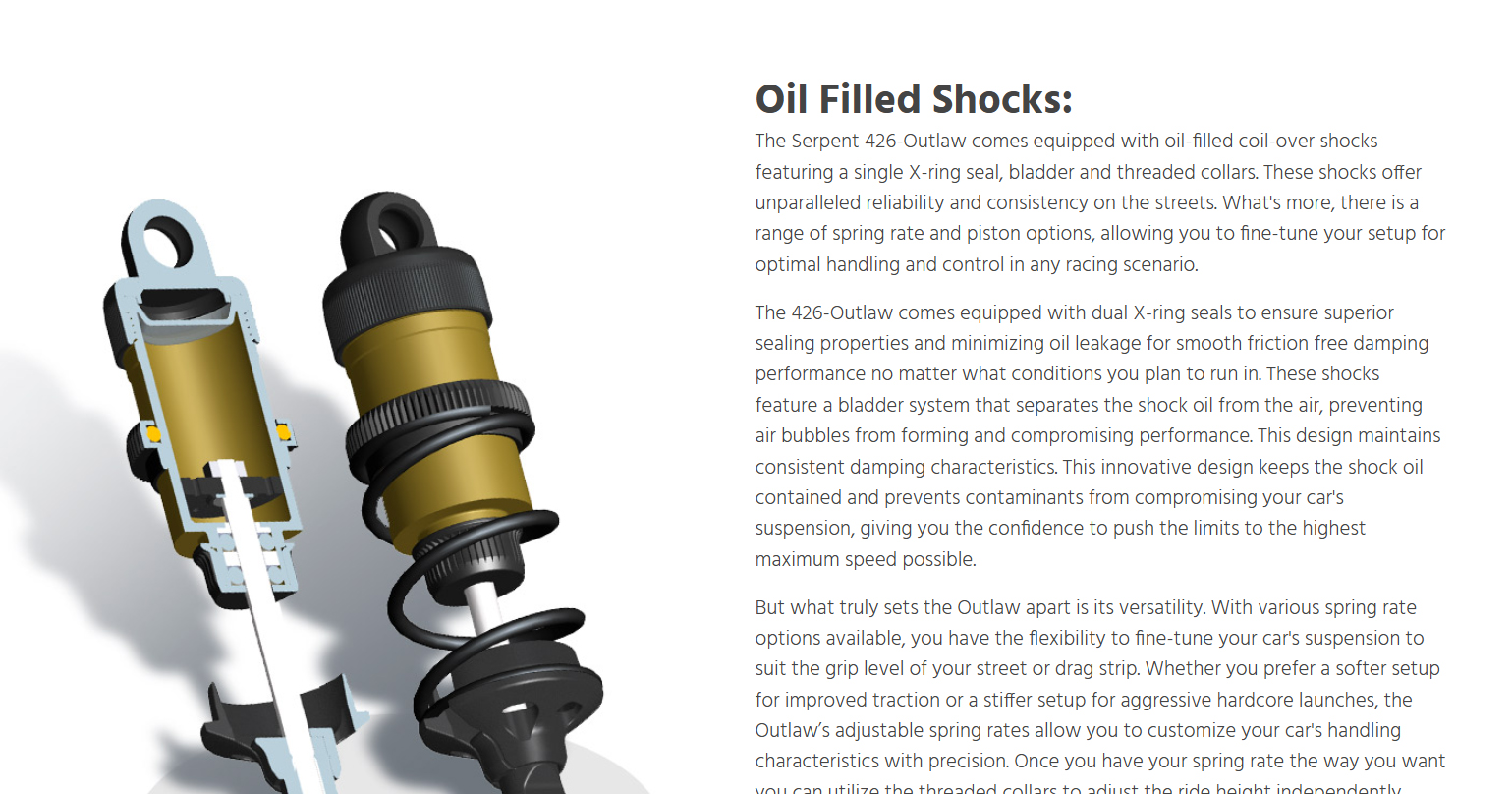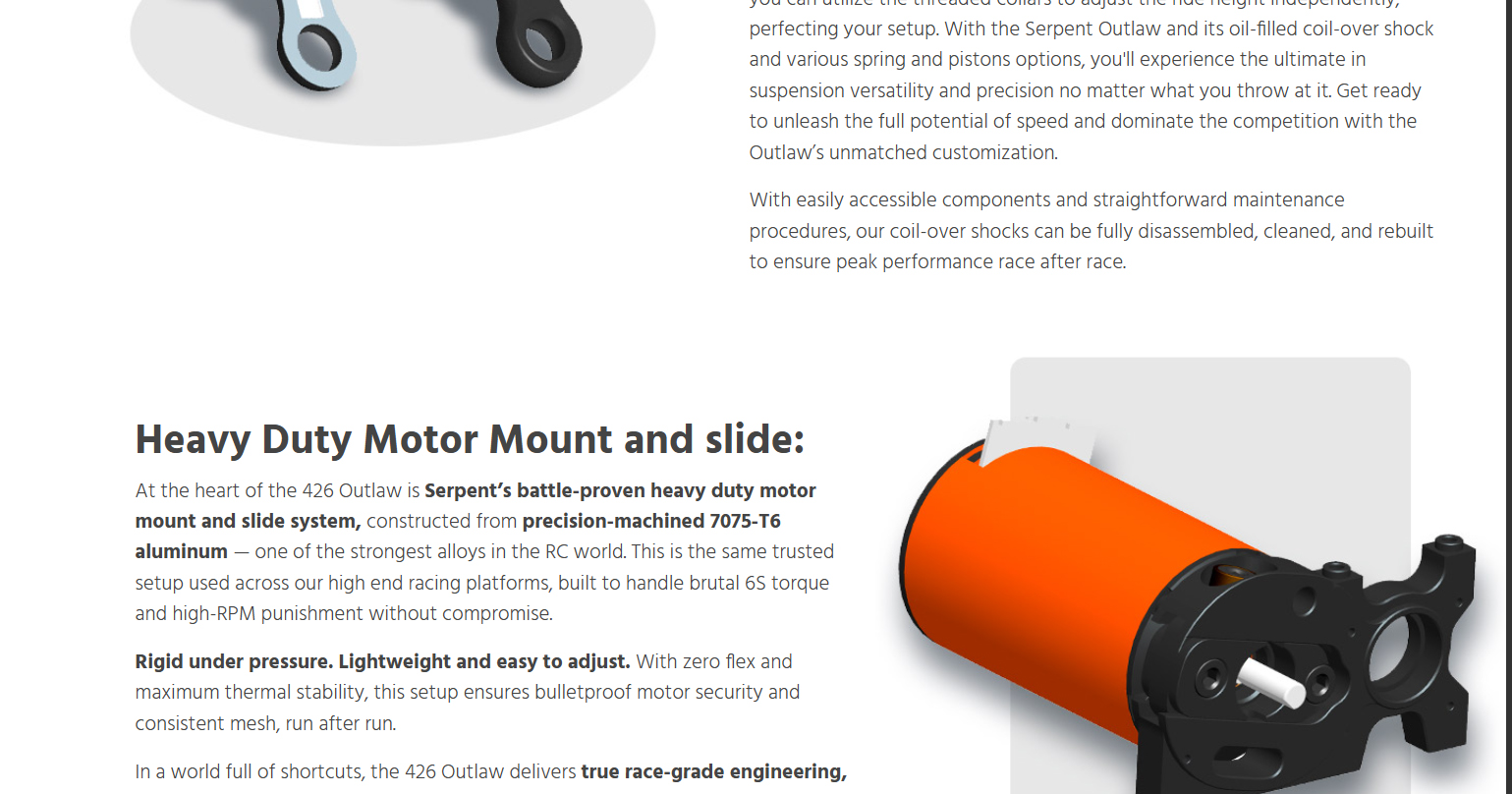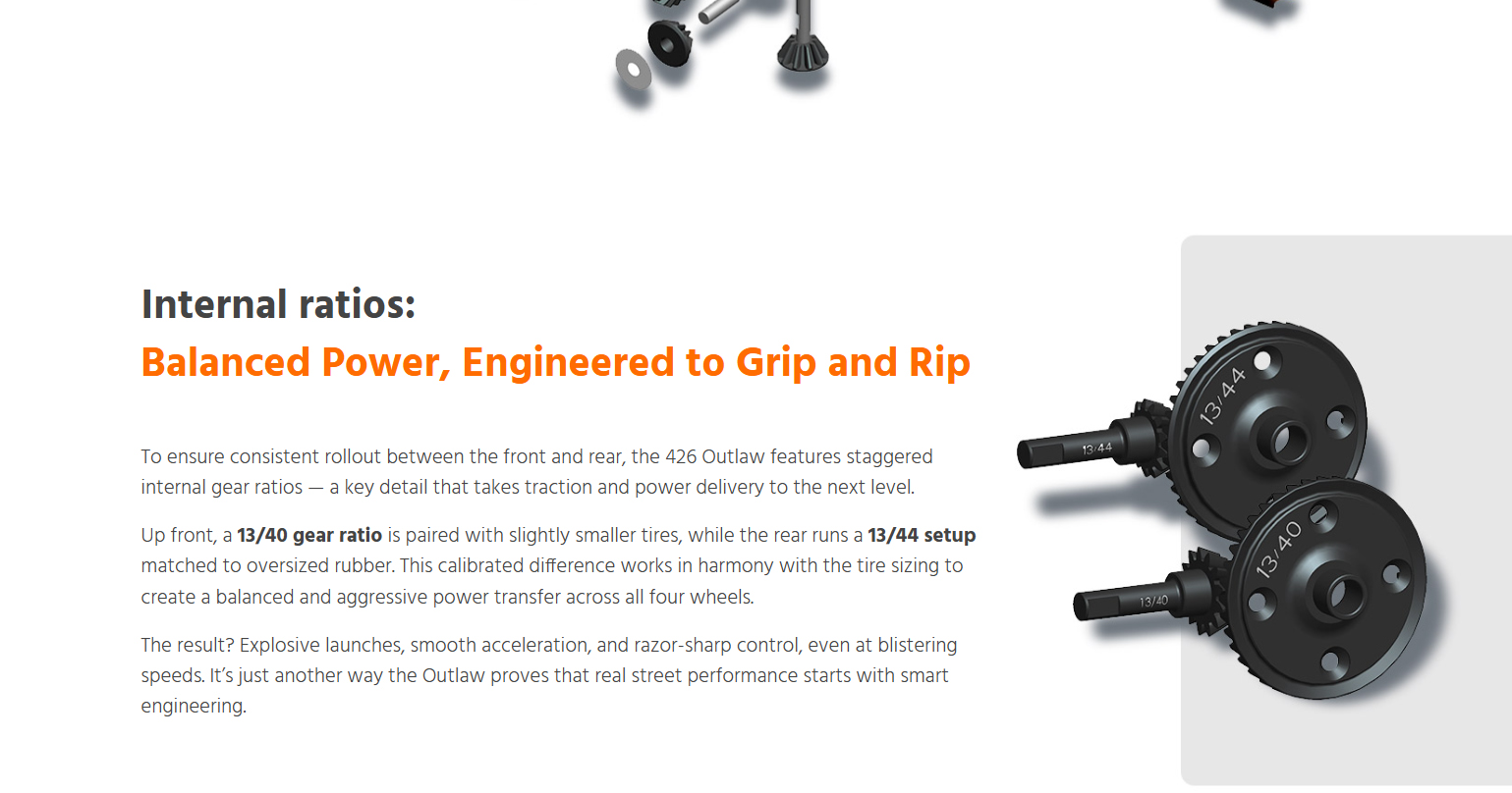 Born from Serpent’s precision racing heritage and forged for asphalt warfare, the 426 Outlaw is a street-shredding machine built to dominate with 6S brushless power, wide-body muscle, and pure outlaw attitude. This beast doesn’t just run like a muscle car — it looks and screams like one too. Whether you’re bashing for fun or a die-hard street racer, ready to own the asphalt, the all-new 426 Outlaw is built to get the job done — hard and fast. Powered by serious 6S brushless muscle and wrapped in a 1/7 scale wide-body inspired by the legendary machines of the golden era, the Outlaw brings raw ’60s aggression and race-proven performance all wrapped into one fierce package for the modern day RC street racing scene. From heart-stopping-launches that shake the pavement to high-speed drag runs, the 426 Outlaw tears through the streets with flared fenders, massive rear wing, supercharger, and a street-splitting stance that demands respect. Whether you’re tearing up your local parking lot or pushing the limits in a street race, this machine is your ticket to total domination. With Serpent’s racing heritage under the hood and outlaw attitude on every corner, the 426 Outlaw isn’t just another RC car — it’s a full-scale rebellion that challenges the status quo and leaves competitors in the dust. When the streets demand a rebel, the 426 Outlaw answers the call: no rules, no mercy.