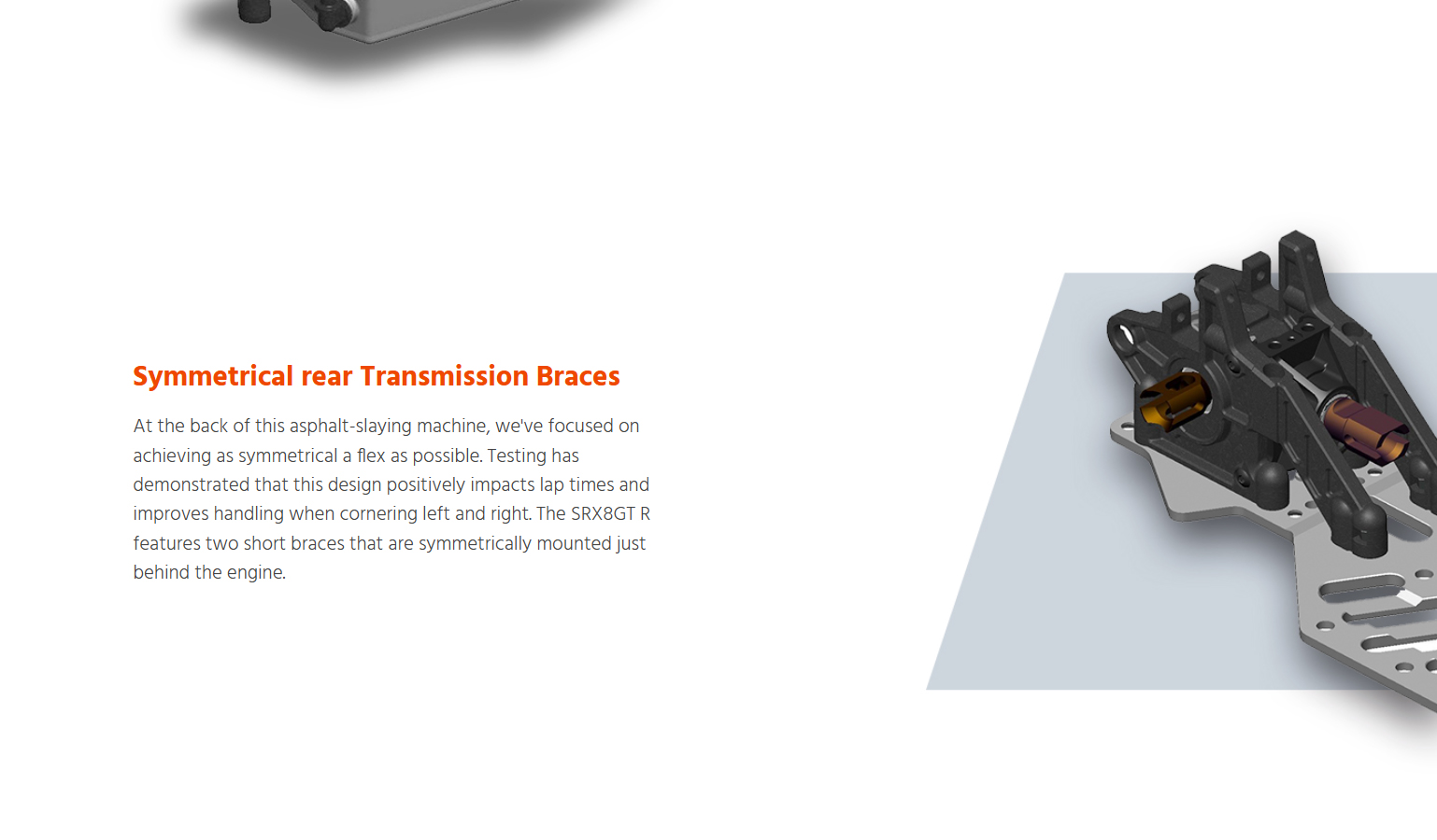 The SRX8GT R represents the next step in the evolution of the SRX8GT '23, with a singular focus: to enhance speed! Thanks to the invaluable contributions from Andrea Catanzani and his father, Roberto, we've implemented numerous modifications aimed at reaching this objective. We've refined the suspension geometry, transmission, and adjustability to optimize performance. All of this has been accomplished while maintaining the outstanding reliability of the GT '23.